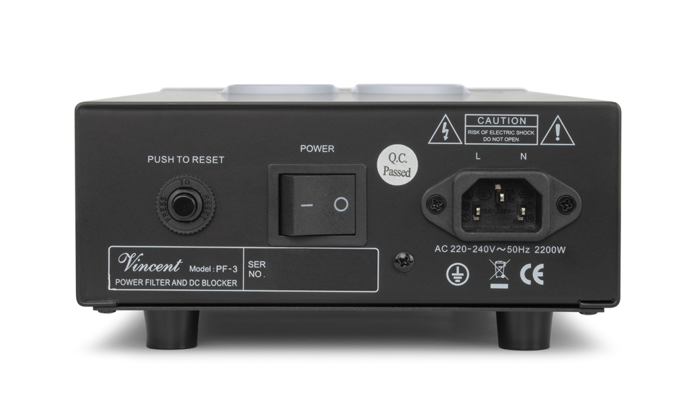 It's frustrating when "dirty" power negatively impacts the performance of your hi-fi system. These days, the increasing number of connected devices can lead to more frequent fluctuations in current and voltage. Photovoltaic systems can also increase the DC component in your home's electrical grid, which in the worst case can even cause mechanical transformer hum. The Vincent PF-3 eliminates interference and delivers a stable and clean power supply to your system. DC voltage is effectively removed by the built-in DC blocker. The power strip is protected by automatic overload protection.